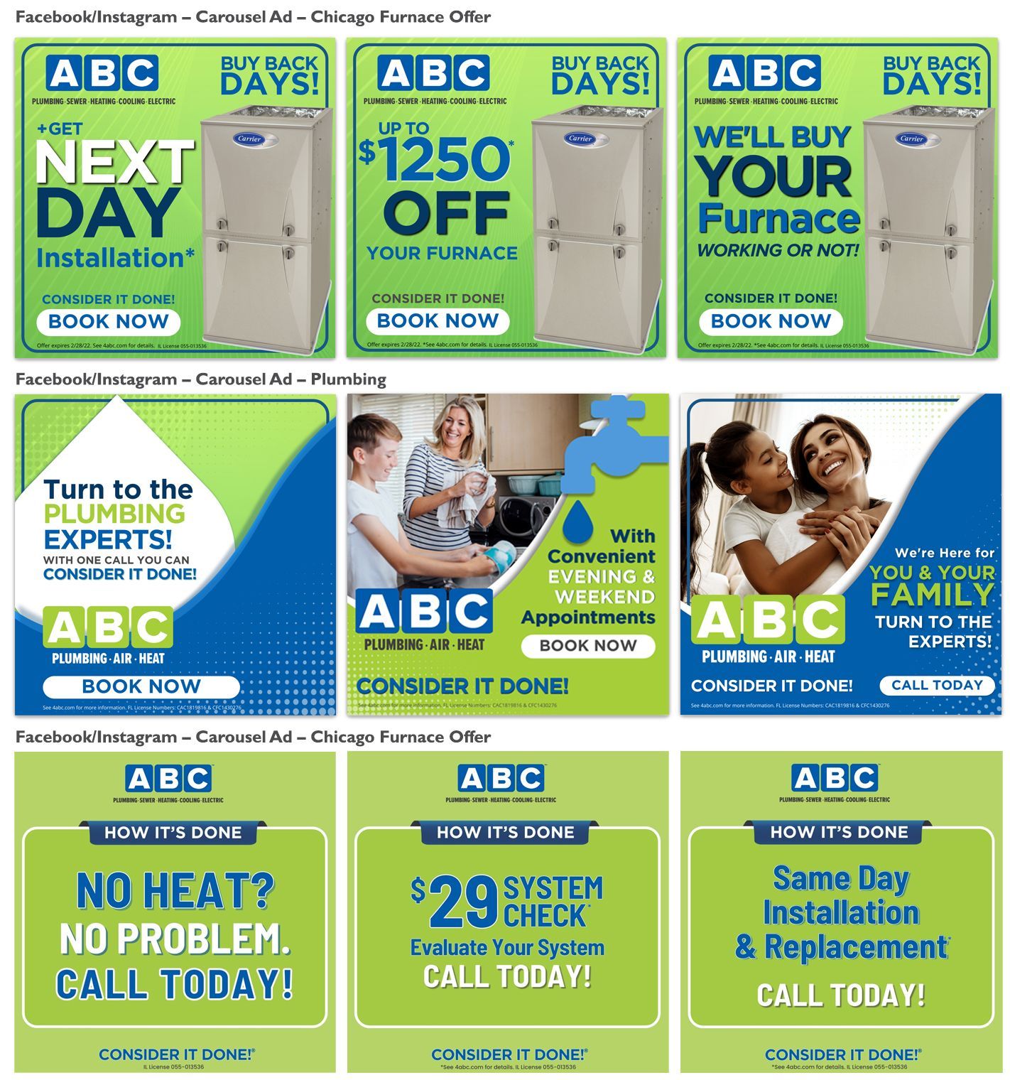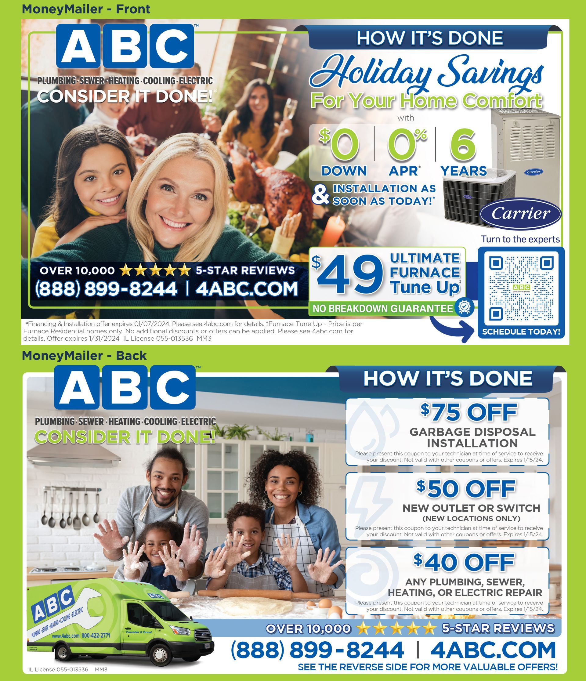 Monthly ads delivered to homes across the Chicagoland area offering a variety of services and coupons. Leveraging technology such as QR code to prompt engagement.