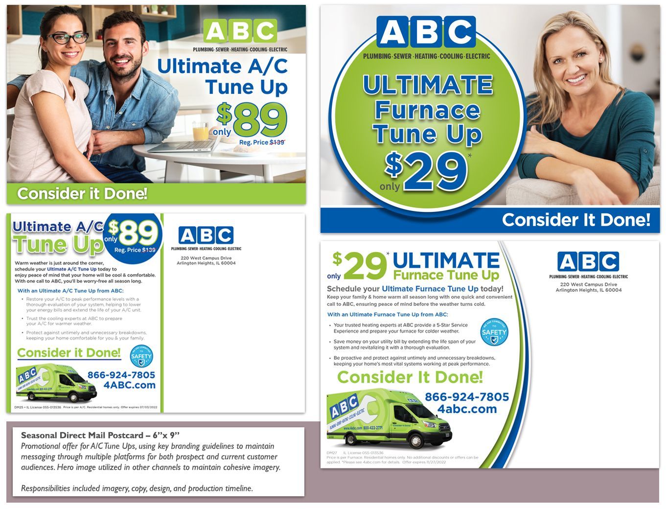 Promotional offer for A/C Tune Ups, using key branding guidelines to maintain messaging through multiple platforms.